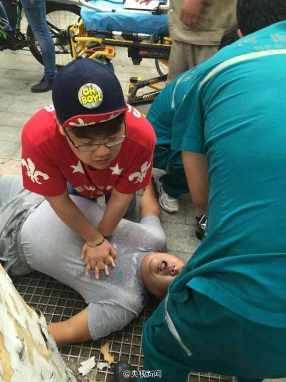 8月9日18點30分,鄭州人民醫(yī)院男護士李笑展在趕赴約會的路上,見路邊一50多歲的先生倒地,口唇發(fā)紫呼吸困難,他立即上前對其采取了胸外按壓急救措施;待急救車趕到,他協(xié)助救援,直到病人病情穩(wěn)定才離開。 央視記者 邱寶華 圖片來源:央視新聞微博