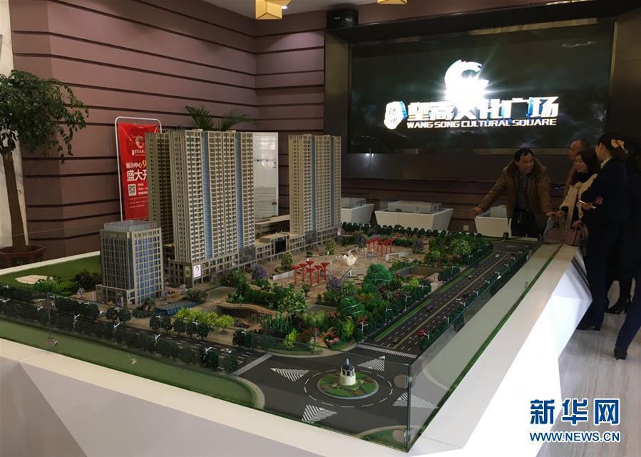 12月8日用手機拍攝的河南汝州望嵩文化廣場沙盤,沙盤左側(cè)是購物廣場和住宅樓,市民正在詢價。 新華社記者 馮大鵬 攝 圖片來源:新華網(wǎng)