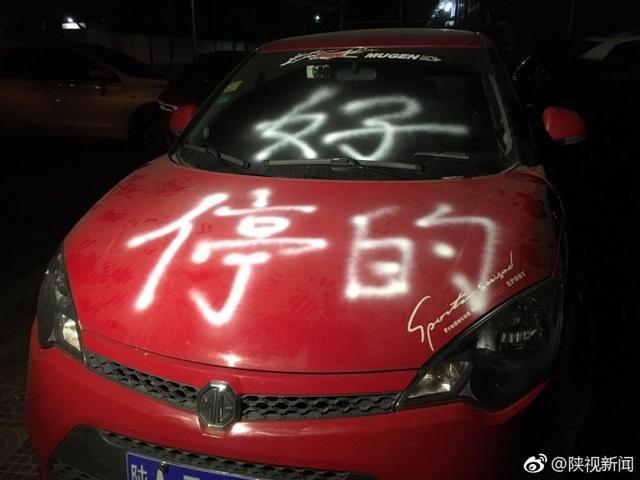 男子到西安方新路吃飯,因?yàn)闆]車位就把車停在道沿中間,擔(dān)心自己的車會擋別人道,他專門留下了聯(lián)系方式。可是吃完晚飯后他回到車跟前卻看到自己的車被人噴了漆,寫了三個(gè)字“停的好”。
