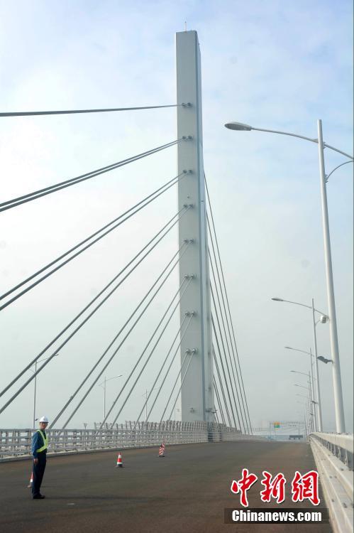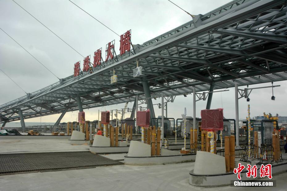11月30日,記者在港珠澳大橋珠海公路口岸看到,口岸的聯(lián)檢部門正在積極地為大橋開通做準備,目前各項收尾工作正在有條不紊地推進中。曾被英國《衛(wèi)報》稱為“現(xiàn)代世界七大奇跡”之一的港珠澳大橋是連接香港、珠海、澳門的超大型跨海通道。它集橋、島、隧道于一體,全長55公里,是迄今世界上總體跨度最長、鋼結(jié)構(gòu)橋體最長、橋面鋪裝面積最大的跨海大橋。 中新社記者 鄧媛雯 攝
