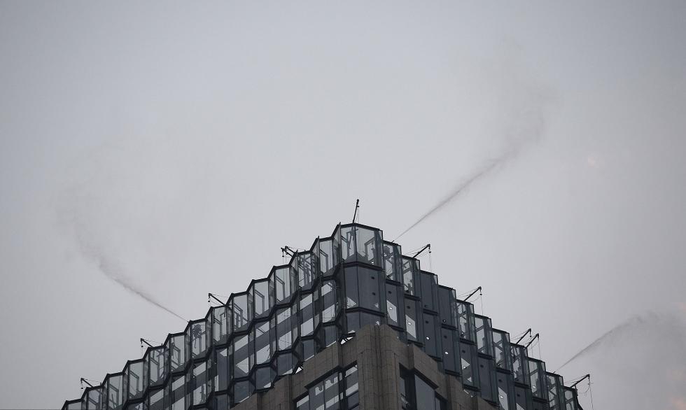 記者注意到,水霧來(lái)源于草叢中的多個(gè)隱形噴頭。這項(xiàng)讓天府廣場(chǎng)有些“仙味兒”的變化,正是成都推進(jìn)大氣污染防治科技治霾的新動(dòng)作——打開(kāi)這個(gè)名為“超細(xì)清水霧系統(tǒng)”的除霾裝置,可以降解距離地面10米以?xún)?nèi)的漂浮揚(yáng)塵顆粒物,起到除霾、降塵、降溫、增加空氣濕度、增加負(fù)氧離子的作用。