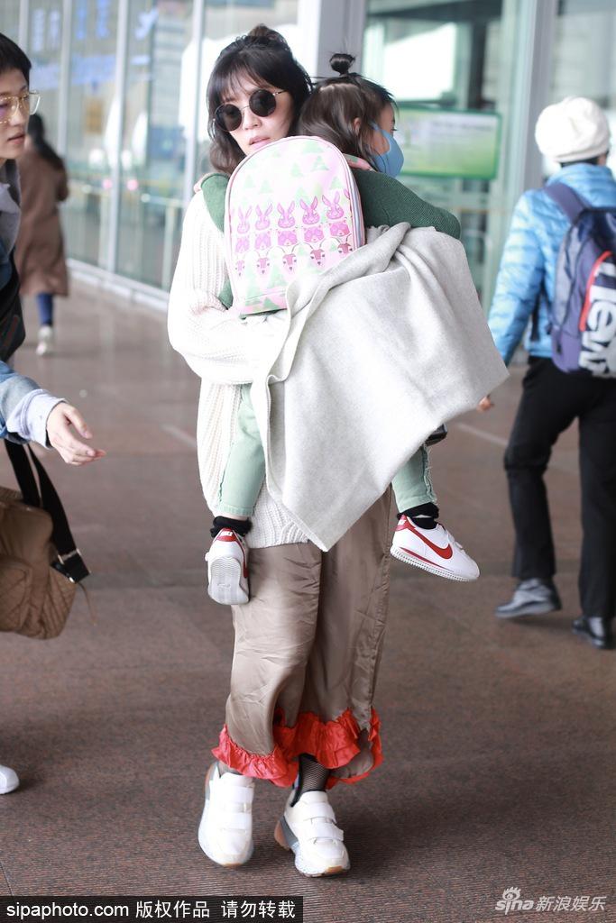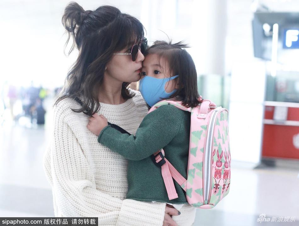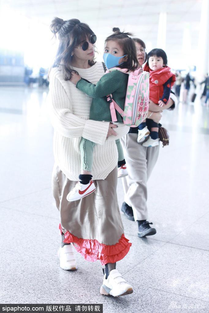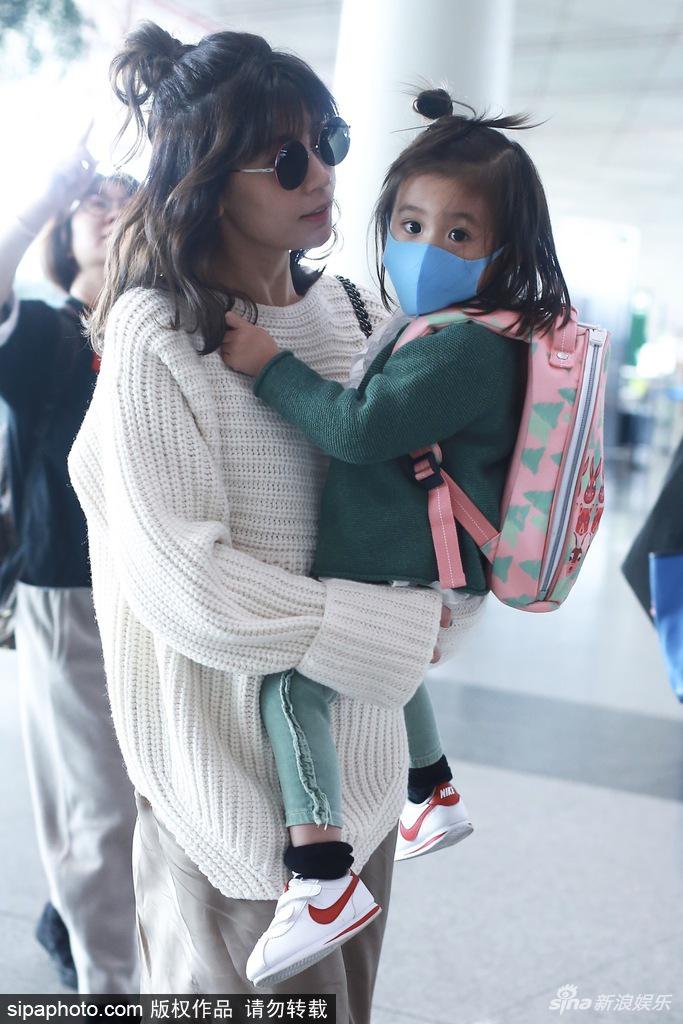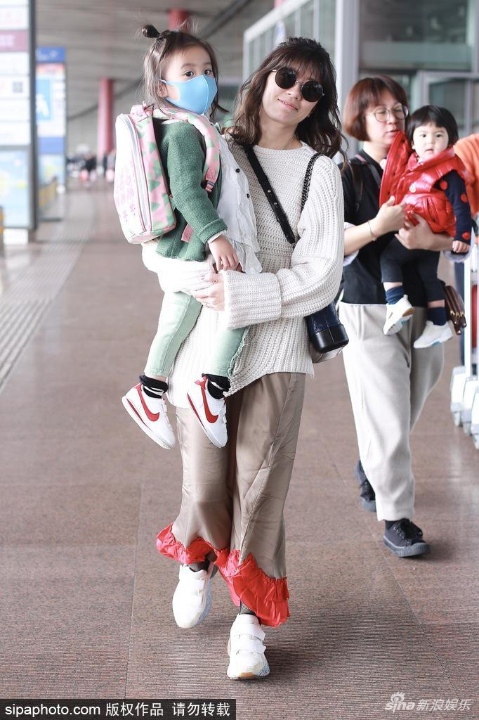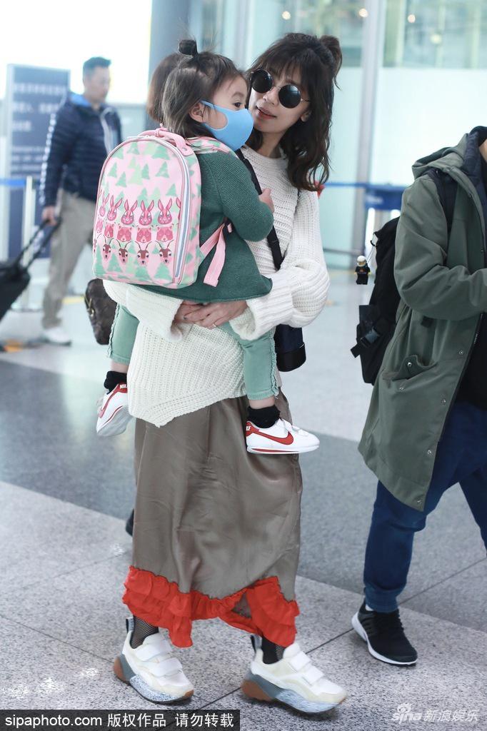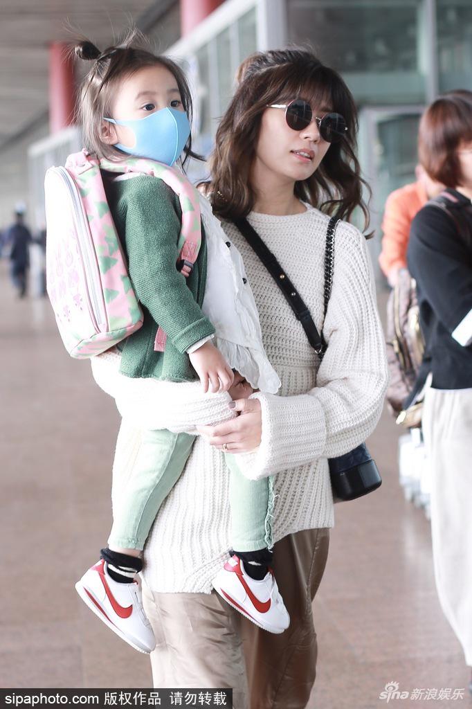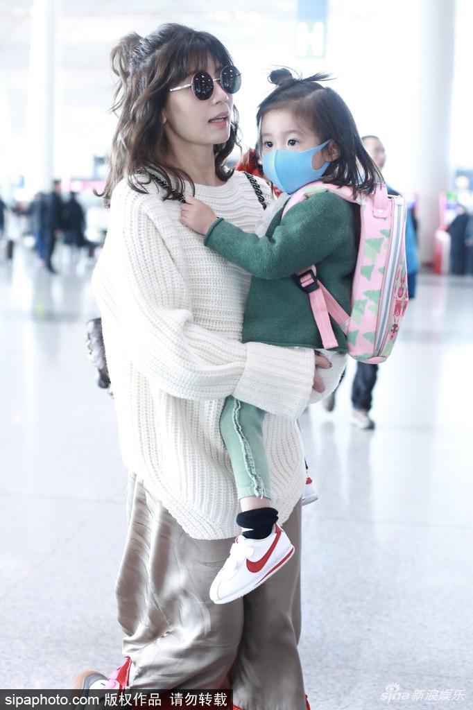 2018年3月20日,北京,賈靜雯抱女兒咘咘現(xiàn)身北京機(jī)場(chǎng)。