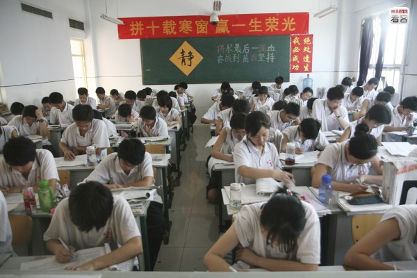 很難說(shuō)在這種狂熱的氣氛下,學(xué)生們是不是真的能靜下心來(lái)。與狂熱氣氛相對(duì)的,是“冷”、“靜”這樣的詞匯的常見(jiàn),不少教室也貼著“冷靜”的提示。圖為2012年6月2日,學(xué)生們準(zhǔn)備高考。