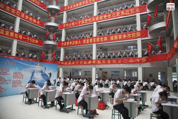 因?yàn)橐欢巍案呖际膸煷髸?huì)”,河北衡水二中走紅。在校外,人們討論這里是名校加工廠,應(yīng)試訓(xùn)練所,還是魔鬼集中營(yíng)。而在校內(nèi),考生和老師宣誓要“拼盡最后一滴血”。編輯/聞烜