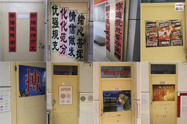 在校方的壓力之下,學(xué)生們自己也開(kāi)始以不同方式給自己、給同學(xué)打雞血、互相勵(lì)志。圖為學(xué)校的“門文化”。