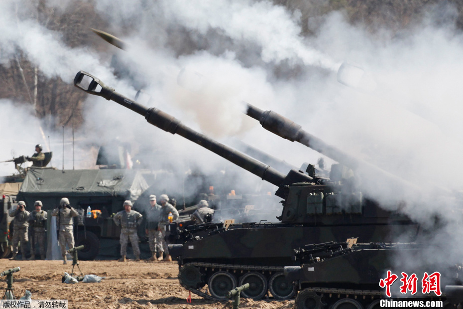 2012年3月15日,韓國京畿道抱川市,韓國和美國士兵在實彈射擊靶場共同參加代號為“禿鷲”的韓美聯合軍演。