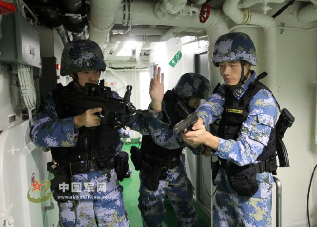 海軍第十一批護航編隊赴亞丁灣、索馬里海域執(zhí)行護航任務以來,針對海況復雜多變,海盜活動更趨隱蔽、猖獗、頻繁等嚴峻特點,編隊指揮所科學籌劃護航行動,研究掌握海盜活動的特點規(guī)律,合理安排值更執(zhí)勤,加強巡邏警戒,狠抓各項制度落實,搞好預想預測,完善多套方案預案,著力提高快速反應能力。在查證、驅(qū)離疑似海盜船只時,確保預先發(fā)現(xiàn)、快速反應、掌握主動,把兩個“百分之百”要求落到實處。圖為3月下旬編隊實施護航行動時的一組場景。