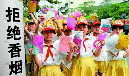 5月30日,許昌市古槐街小學(xué)的禁煙小宣傳員們,帶著親手制作的無煙日手抄報(bào)、禁煙勸導(dǎo)卡,來到廣場、公園、商場等公共場所,勸導(dǎo)市民拒絕煙草。