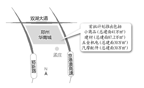 他介紹,位于新鄭的華南城一期首批計(jì)劃推出小商品市場(chǎng)和精品交易區(qū),總計(jì)158.2萬(wàn)平方米。精品交易區(qū)包括建材、五金機(jī)電、汽摩配件等業(yè)態(tài)。