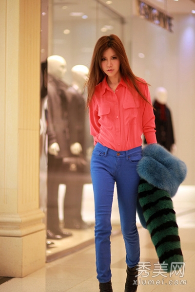 撞色搭配時(shí)尚搶眼,特別有視覺(jué)沖擊力,紅色簡(jiǎn)約襯衫搭配藍(lán)色小腳褲,鮮明的色彩對(duì)比,想不成為焦點(diǎn)都難呢。