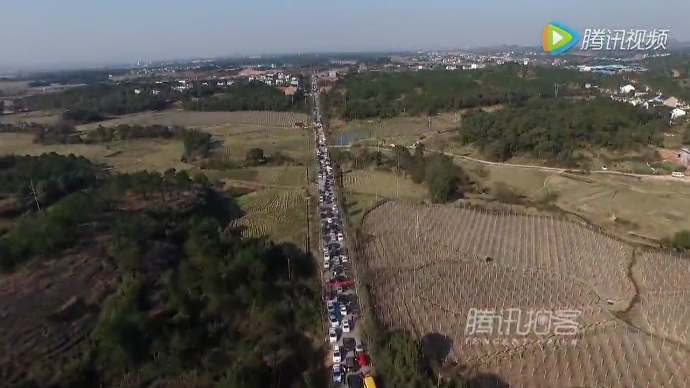 • 航拍農(nóng)村拜年車隊堵爆馬路