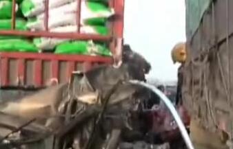 • 十車連環(huán)撞 轎車被擠扁