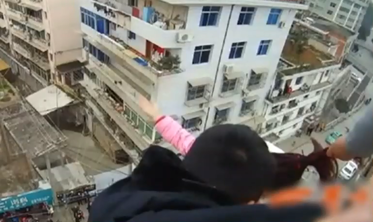 • 實(shí)拍:男子抓住跳樓妻子頭發(fā)