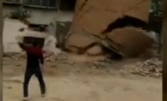現(xiàn)場:煙囪倒塌 人被砸中