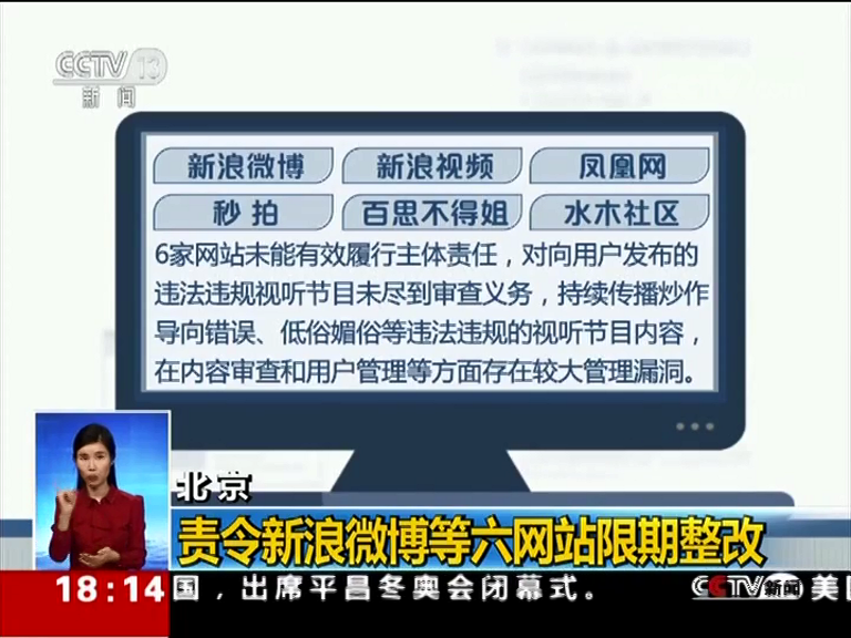 • 責(zé)令新浪微博等六網(wǎng)站限期整改