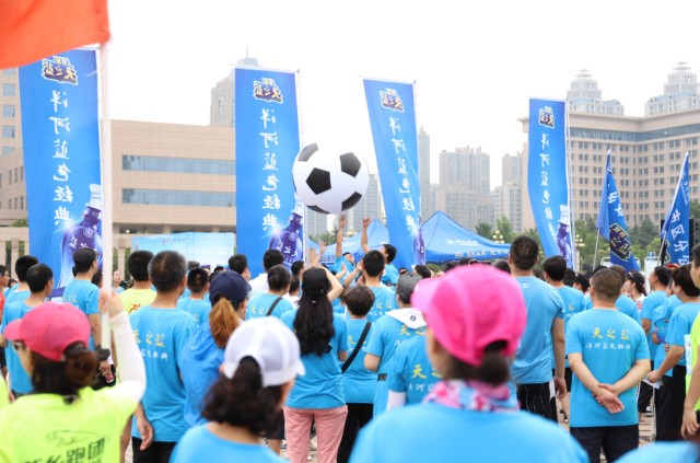 舞臺區(qū)化身足球?qū)氊惱怖碴牭恼故九_,動感時尚的舞步與潮流健身操結(jié)合,引得群眾積極互動。更有樂隊演出環(huán)節(jié),為奔跑的新鄉(xiāng)市民獻上一首勝利贊歌。