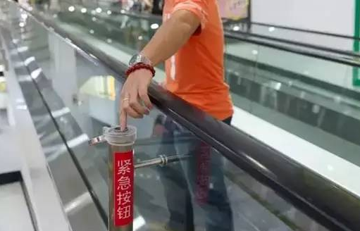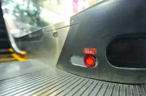 萬一乘坐電梯出事,你必須了解無論上的方向還是下的方向,手扶電梯的一側(cè)下方都有一個紅色的緊急停止按鈕。