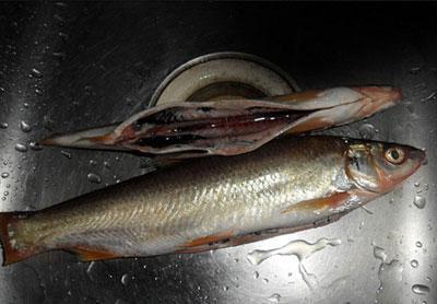 ▲ 魚“黑衣”——有害物質(zhì)匯集層魚體腹腔兩側(cè)有一層黑色膜衣,這層黑膜是魚腹中各種有害物質(zhì)的匯集層,是最腥臭、泥土味最濃的部位,含有大量的類脂質(zhì)、溶菌酶等物質(zhì)。
