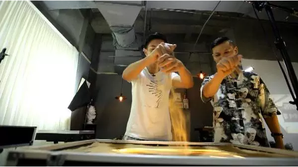 沙子的厚薄出來(lái)的效果,就是我們中國(guó)畫(huà)的墨分五色,所謂墨分五色就是濃淡干濕燥,其中的奧妙就是沙子和燈光的完美結(jié)合。