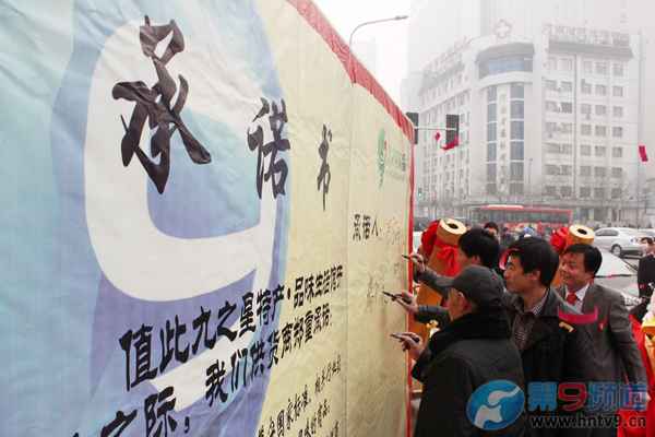 上午,以河南豐富的農(nóng)業(yè)特產(chǎn)濟源為優(yōu)勢,匯集中原名優(yōu)特產(chǎn)的“河南九之星特產(chǎn) 品味生活館”在鄭州市黃河路與經(jīng)三路口正式開門營業(yè)。河南影視集團董事長宗樹潔、省農(nóng)業(yè)廳副巡視員魏仲生、河南電視臺新農(nóng)村頻道總監(jiān)張克宣出席并為為開業(yè)儀式剪彩,九之星總經(jīng)理肖俊德和公司員工并在商品質(zhì)量承諾保證書上鄭重簽字。