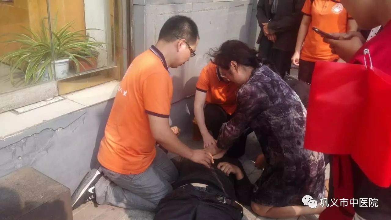“我是護士,讓我來!”喬紅連忙上前,向?qū)Ψ奖砻孀约菏庆柫x市中醫(yī)院護士后,趕緊上前查看,發(fā)現(xiàn)頸動脈搏動微弱,橈動脈消失,呼吸輕微,雙目上翻,瞬間大動脈搏動消失,多年的臨床經(jīng)驗判斷為“心臟驟停”,情況十分危急,當即把暈倒老人放平,喬紅顧不上自己穿著短裙行動不便,迅速雙膝跪地開始實施徒手心肺復蘇。同時,讓圍觀群眾撥打急救電話。