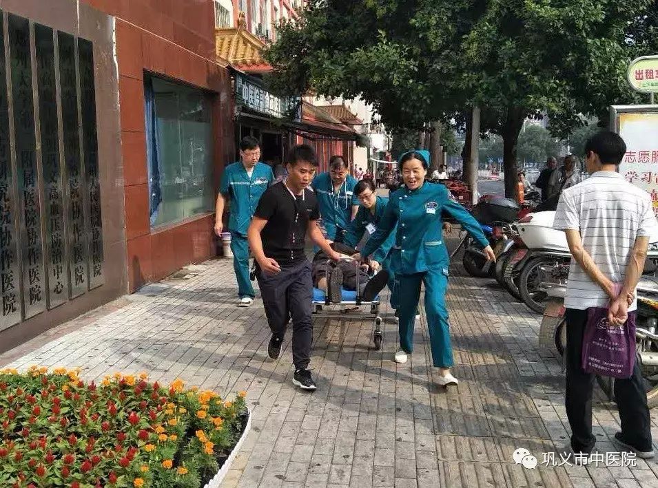 3分鐘后,中醫(yī)院急診科醫(yī)護人員趕到,志愿者、市民與醫(yī)護人員一起把暈倒老人抬上擔架,由于老人心跳沒有恢復,心臟按壓不能停止,喬紅便隨著擔架奔跑著為老人做心臟按壓,直到抬到醫(yī)院急診科搶救室。