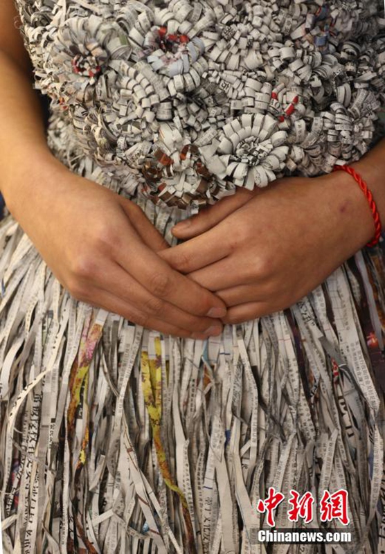 創(chuàng)意又環(huán)保 成都大學生用廢紙做婚紗