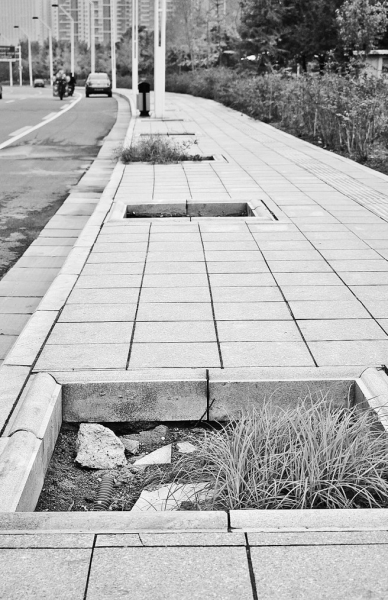 昨日,記者來到鄭東新區(qū)商務(wù)外環(huán)路,在商務(wù)外環(huán)路與商務(wù)西三街交叉口發(fā)現(xiàn),商務(wù)外環(huán)路人行道上有一排整齊的樹坑,大略一數(shù),共計45個樹坑。這些樹坑呈正方形,長寬約有1米,每個樹坑相距約3米。樹坑大多長滿野草,有的樹坑內(nèi)堆滿生活垃圾。這一場景與郁郁蔥蔥的周邊環(huán)境很不協(xié)調(diào)。