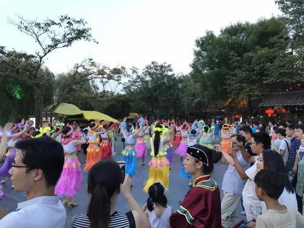 亮點之清涼快閃:舞蹈演員和清園紅人組成的清涼快閃團(tuán)隊是夜游里的一大亮點,異域美女和古裝大佬們的激情碰撞,挑起了大家的興奮神經(jīng),讓我們一起歡樂一起嗨……