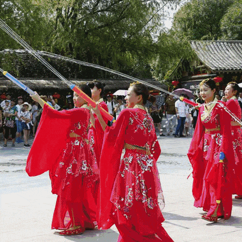 另外聲、光、水、景為一體的水鼓表演和激情樂隊特色舞蹈,景區(qū)內(nèi)的水槍大戰(zhàn)和推鐵環(huán)、打陀螺、抖空竹、推獨(dú)輪車、挑柴擔(dān)等,都是夜游清明上河園不可或缺的體驗項目。